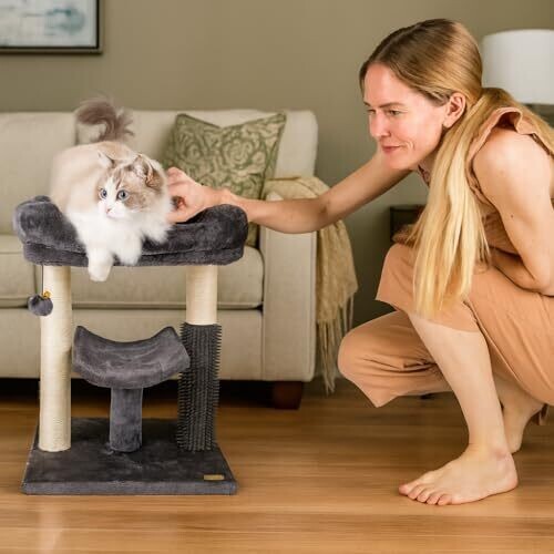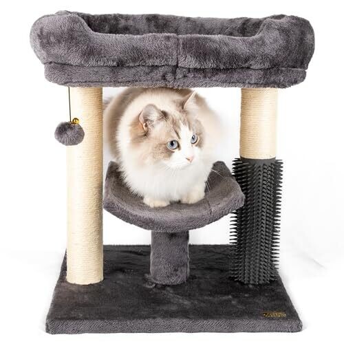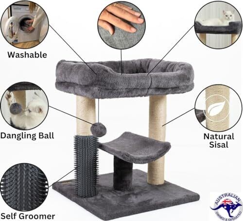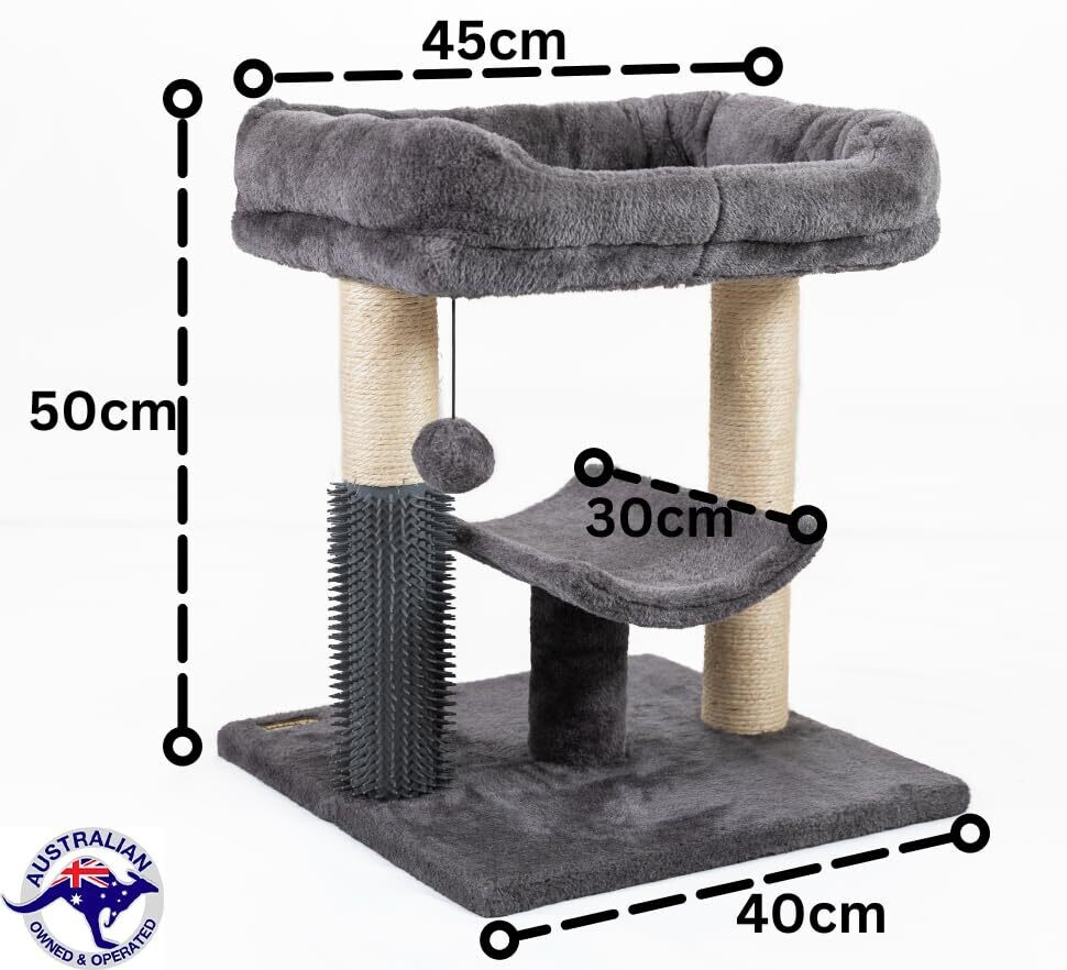 Aussie Furbaby Compact Cat Tree With Scratching Posts & Hammock – Furniture With Grooming Brush