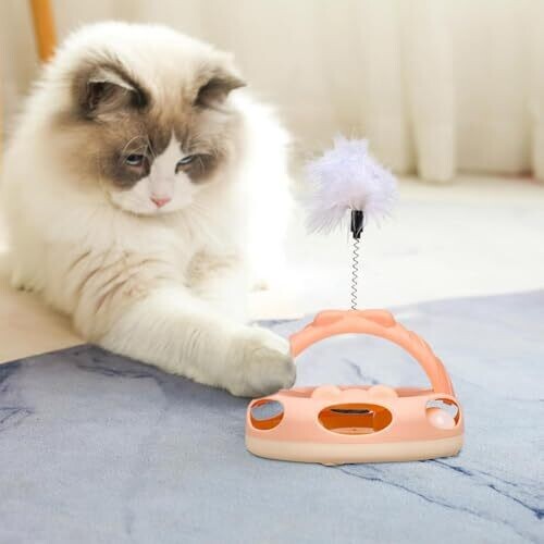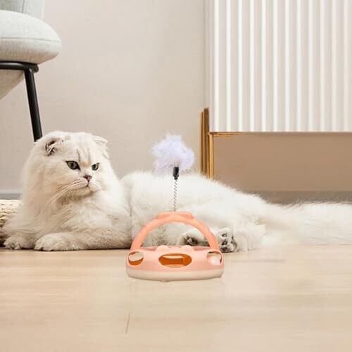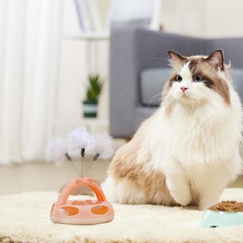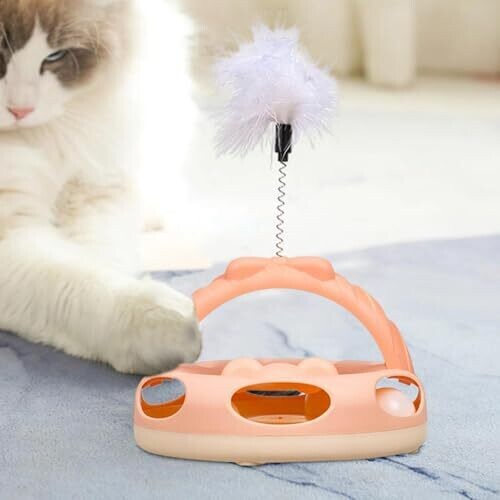 - Experience a multi-functional cat toy designed to engage indoor cats with an interactive turntable, ball, and dangling feather for hunting-inspired play.