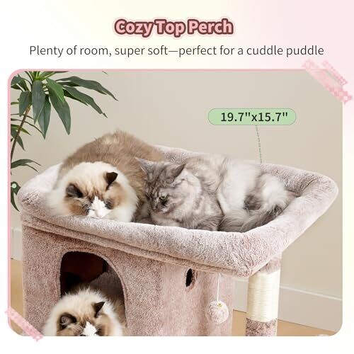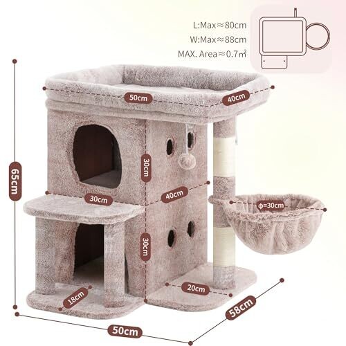 - 65 cm tall cat tree with a roomy top perch for large cats to stretch out and sunbathe.