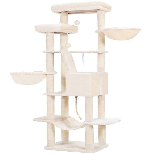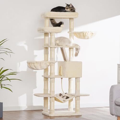 Heybly Cat Tree For Large Cats 173Cm Tower Plush Perches And Big Caves Hct025M
