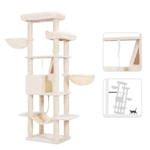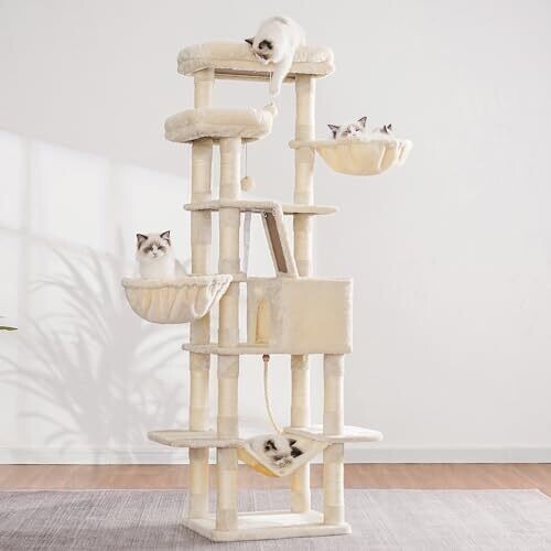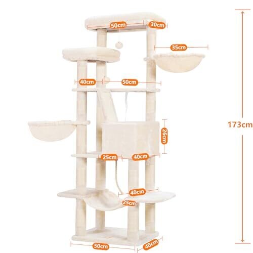 - A tall, 173 cm structure with step-like levels encourages climbing, scratching, stretching, and playful exploration.