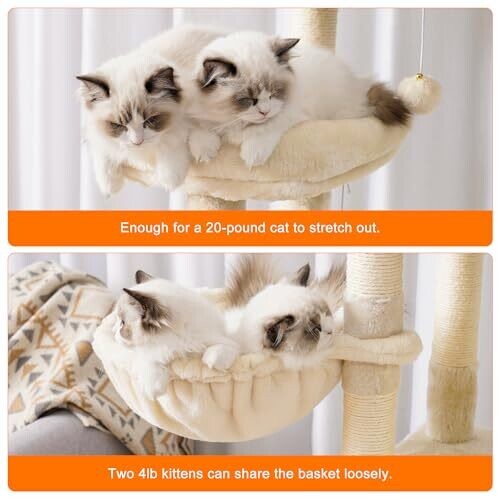 - Cozy, roomy cat baskets and a large cave provide private hideaways where cats can curl up and feel safe.