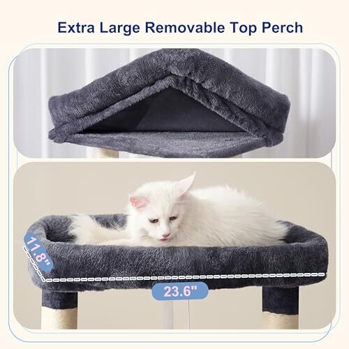 - Removable top perch with padded edges and washable cover for easy cleaning and ongoing comfort.