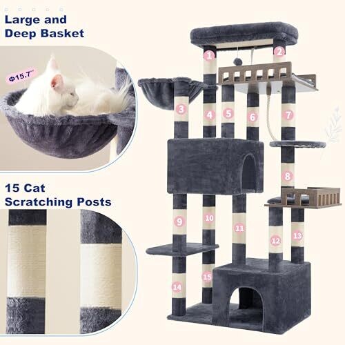 - 15 scratching posts wrapped in natural sisal invite healthy claw maintenance and extended furniture protection.