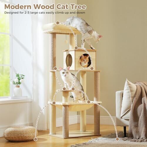 - Modern wooden cat tree that effortlessly blends with any home decor, while delivering a luxurious retreat for your cat.