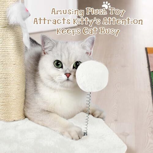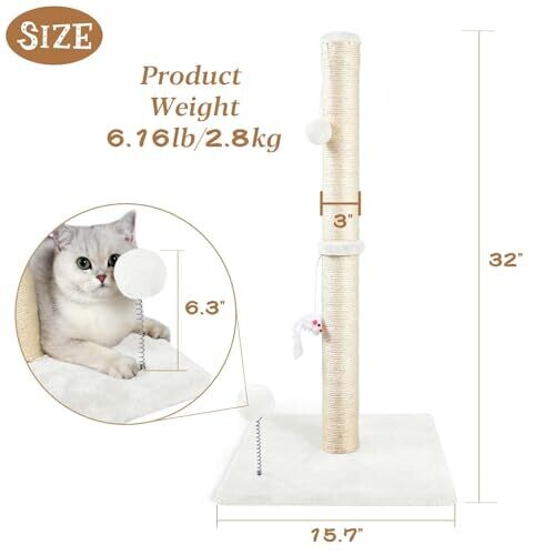 Anwa 32" Tall Cat Scratching Post, 3-In-1 with Plush Toys, Premium Sisal Post, Cream White