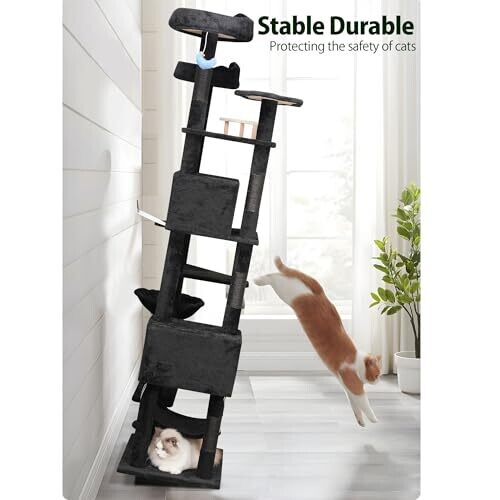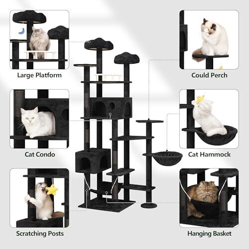 - Durable, furniture-friendly construction with multiple scratching posts and plush perches.
