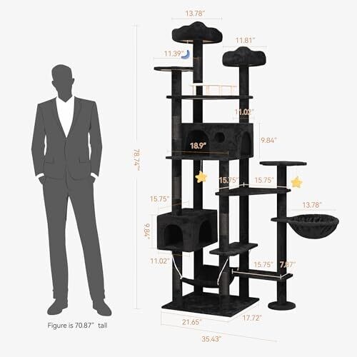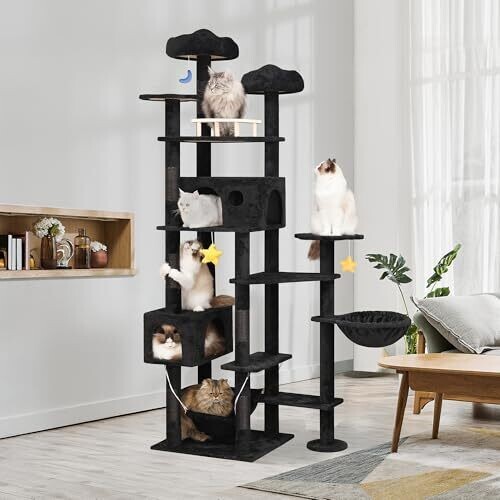 Meecal 79Inch Giant Cat Tree for Heavy Duty Big Cats, Luxury Cat Tower with Scratching Post, Black