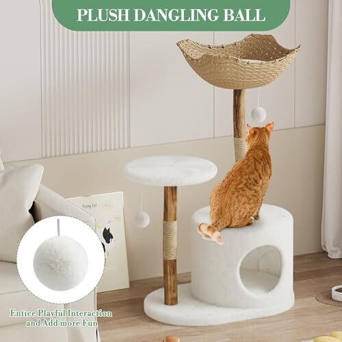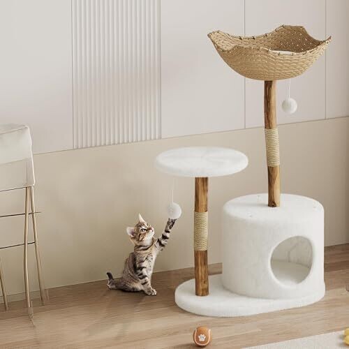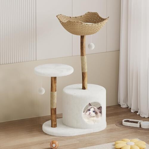 Premium Wood Cat Tree Tower with Sisal Scratching Posts, Plush Condo, Scandinavian Design