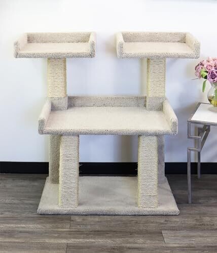 Made in the USA with premium materials, including a solid wood frame, thick household-grade plush carpet, and tightly wound unoiled sisal rope to ensure durability and stability for large or multi-cat households.