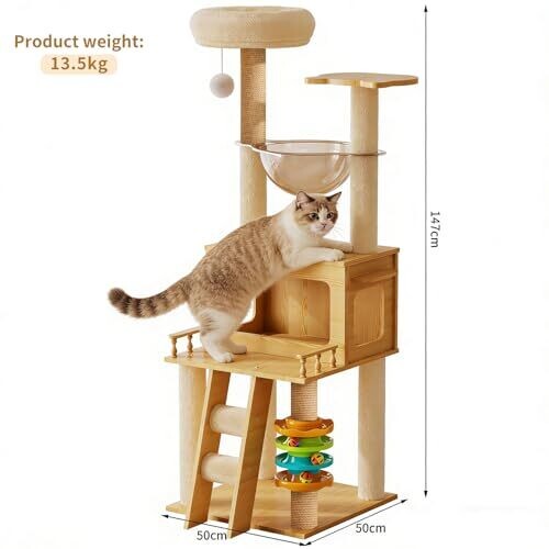 • 147 cm tall, designed to give cats multiple elevated viewpoints and safe resting spots.