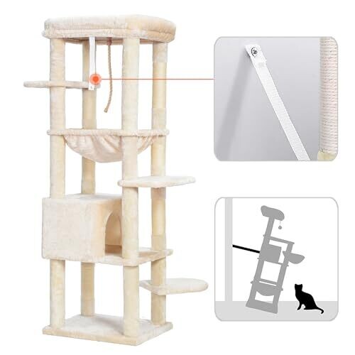 • Heybly Cat Tree for Large Cats 9Kg Heavy Duty 153cm XXL Cat Tower for Indoor Kitten HCT050M