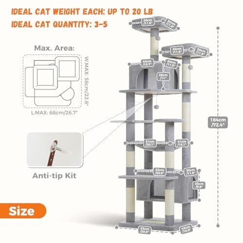 • Elevate playtime with a grand 184 cm cat tree designed for busy multi‑cat households.
