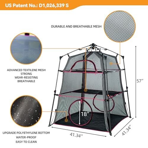 - Outdoor-ready features include breathable mesh for 360-degree visibility and a top waterproof cover to shield from light rain.