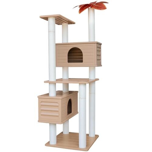 Maohegou Outdoor Weatherproof Cat Tower, 64 Inches Tall, Dual Condos, Multi-Level Cat Tree