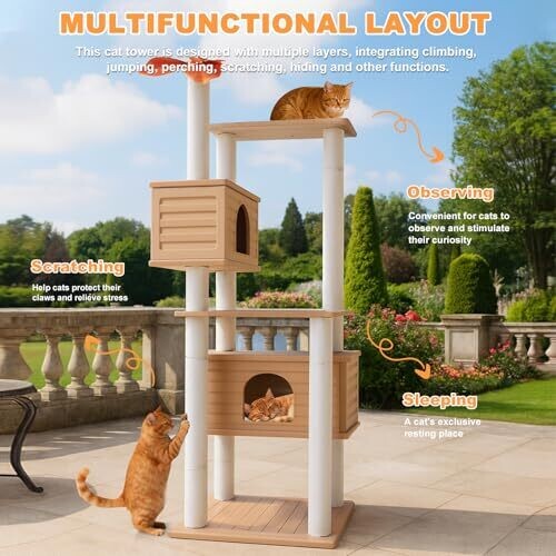 - 64 inches tall outdoor weatherproof cat tower designed for both outside and inside use