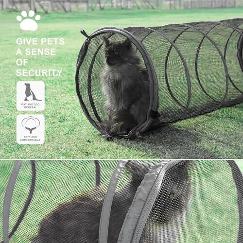 An all-in-one cat tower with a tunnel, pop-up cube, and climbing enclosure for versatile indoor and outdoor play. Features breathable 360-degree mesh for visibility, a portable foldable design, and a sturdy 19mm iron base for durable stability.