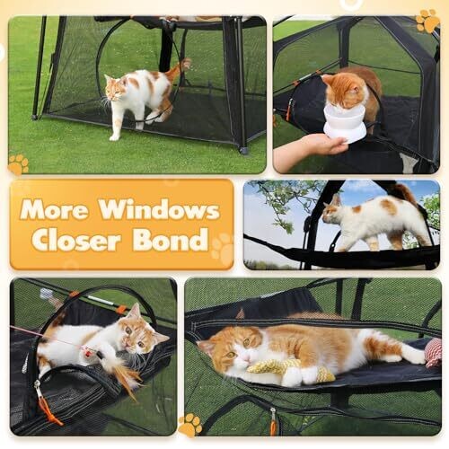 - Rywell Extra Large Cat Enclosure offers a triple outdoor cat tent design with ample space for multiple cats to explore and play.