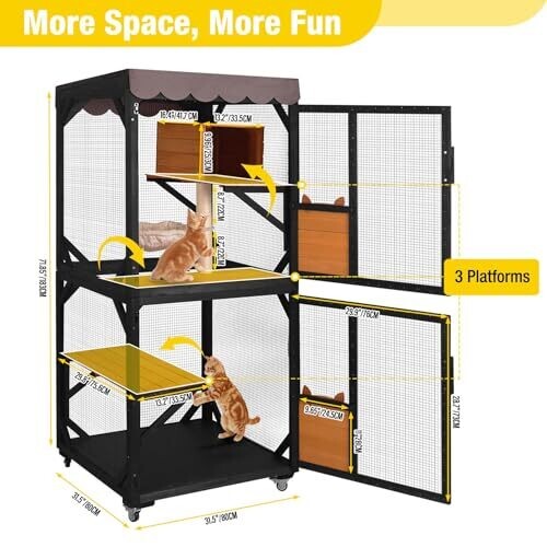 - Three elevated platforms provide varied vantage points and climbing opportunities to satisfy curious cats.