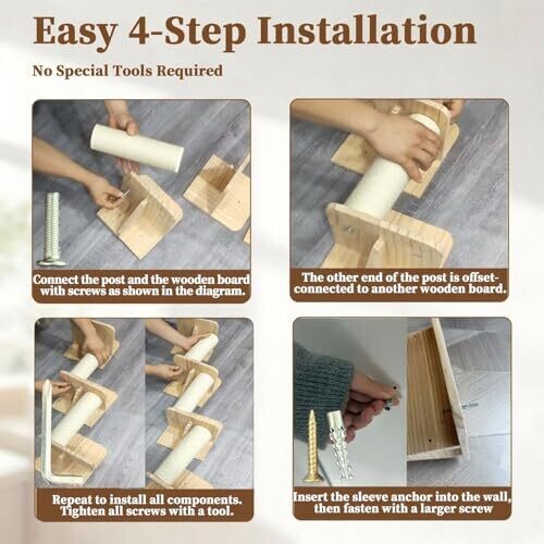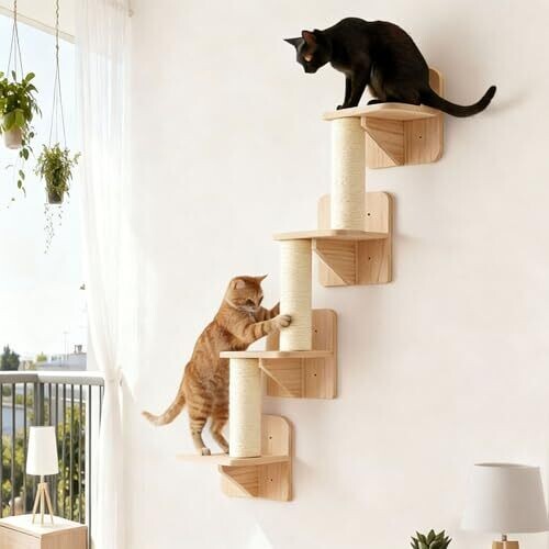 Cat Wall Shelves & Climber for Kittens – Solid Wood Climbing Frame, 4 Level Wall Tree (37 Inches)