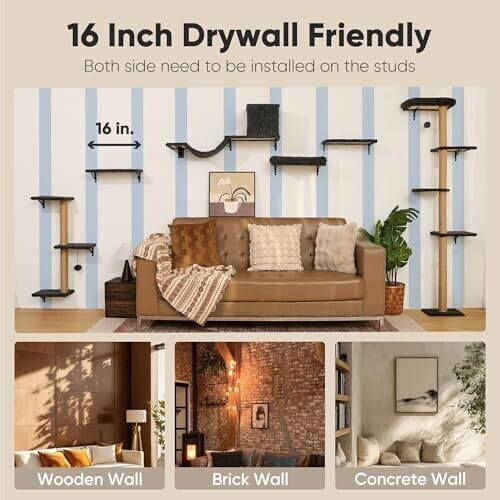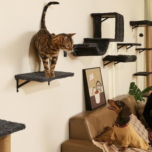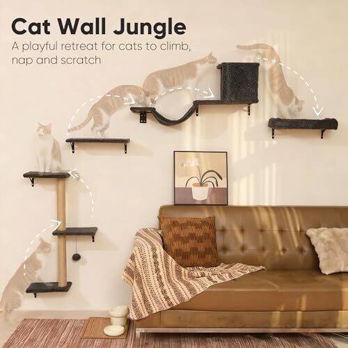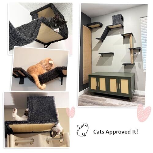 - Elegant 4-in-1 cat climbing wall that blends with modern decor while keeping cats active and happy.