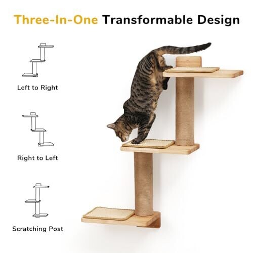 Transformable design works as wall stairs, scratch post, or perch. Space-saving, wall-mounted solution uses vertical space without clutter. Encourages climbing, scratching, napping, and playful exploration for curious cats. Corner-friendly and blends with home décor.