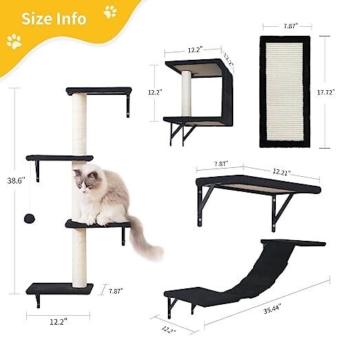 - Easy to reposition and customize the layout to fit your wall and cat’s mood.