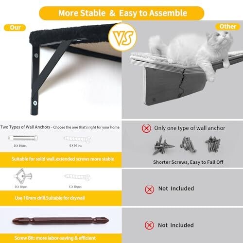 - Elevate play and lounging with a sleek, space-saving wall-mounted cat retreat.