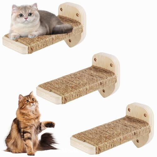 Transform any wall into a vertical playground for your cat with the Musong 3-in-1 wall-mounted setup. Three-tier hemp rope steps, sturdy wood build, and added resting platform offer space-saving play, exercise, and comfort for multiple cats.