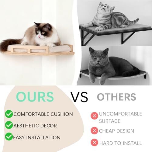 Megidok Corner Cat Climbing Shelf Perches Set, Cat Bed Wall Mounted with Cushion