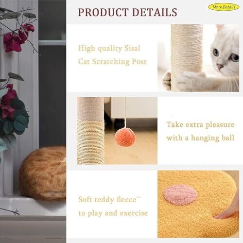 - Natural sisal scratching post helps protect furniture while promoting healthy scratching habits.