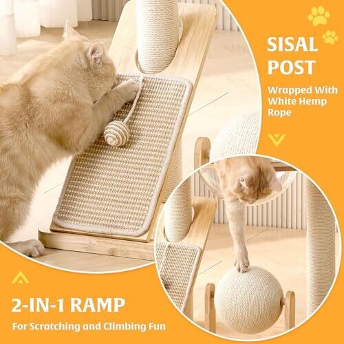 Cat Tree With Top Perch, Natural Sisal...