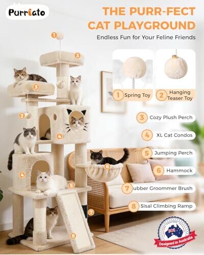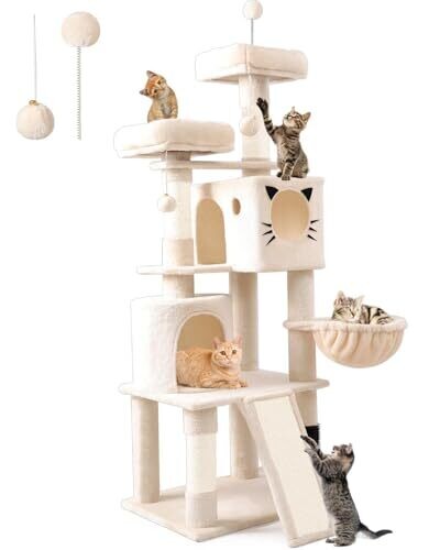 - Spacious, plush lounging nooks and toy features create an engaging playground that suits multiple cats in a single household.