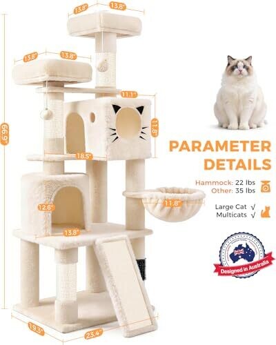 - Multiple cozy condos, elevated perches, platforms, and a hammock create versatile resting and observing spots at different heights.