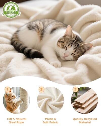 - Sisal-wrapped scratching posts and an added ramp provide satisfying outlets for scratching and stretching to protect your furniture.