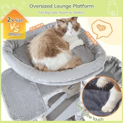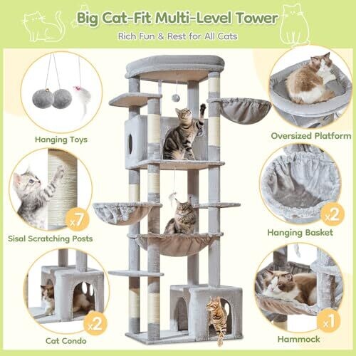 - Enjoy lounging options with a hammock, a cozy basket, and an extra-large platform for lounging.