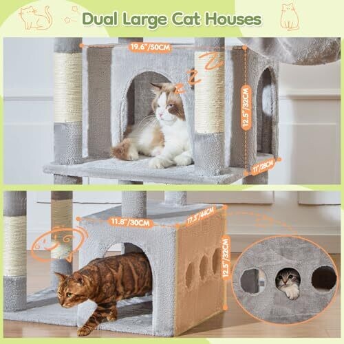 - Two spacious cat condos provide private, uncrowded hideaways for larger cats.