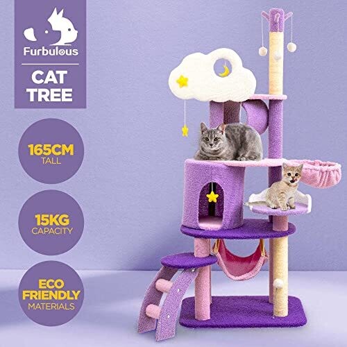 • Furbulous Star and Moon Cat Tree with Hanging Toys and Luxury Condo 160 cm