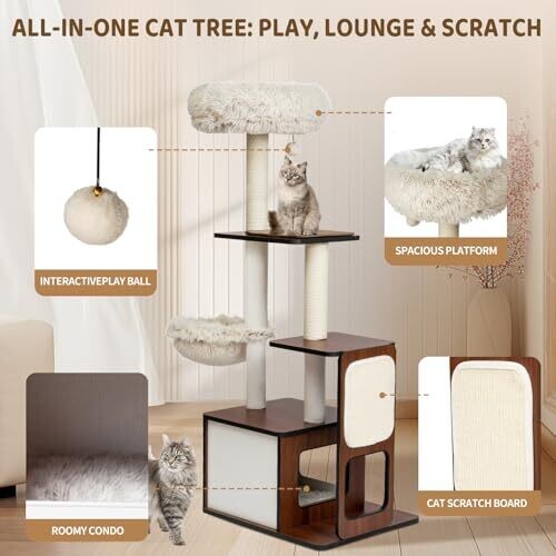 - Elevate play and lounging with a sleek 54-inch multi-level cat tree that blends high-performance fun with modern décor.