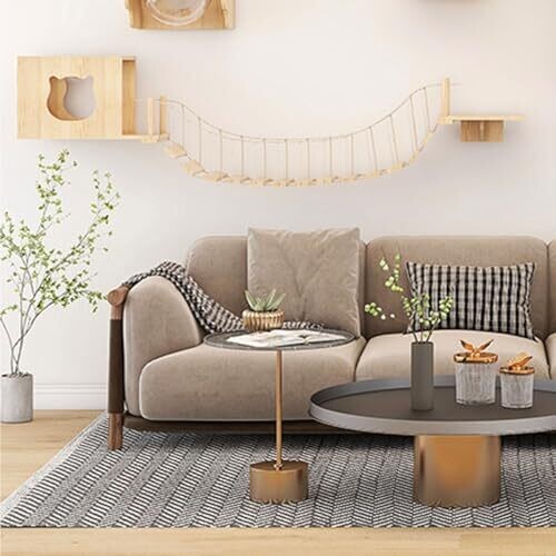 - Multiple elevated perches and a bridge satisfy climbing instincts and provide varied lounging spots.