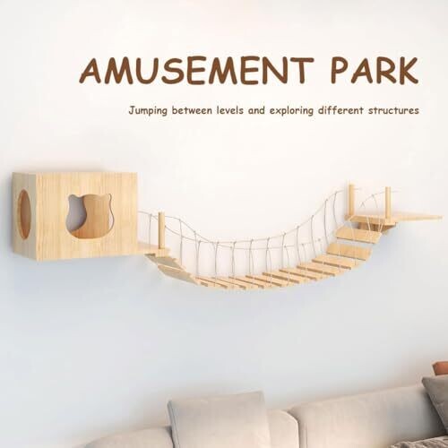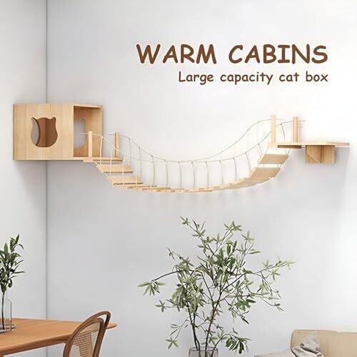 AIMALL Wall-Mounted Cat Climbing Platform with Bridge, Wooden Perch, 43.3 In