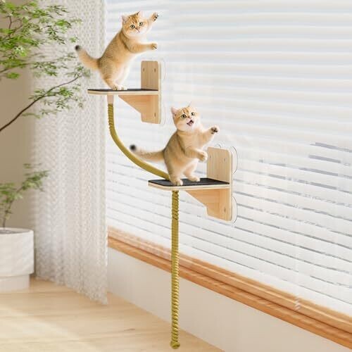 - Space-saving wall-mounted cat shelves that add vertical play and rest space while blending with home decor.