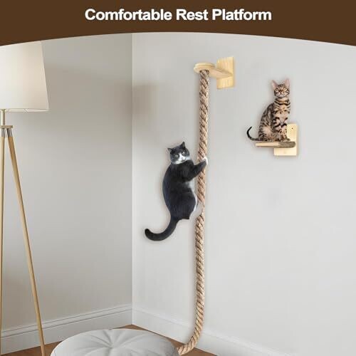 • Wall-Mounted Cat Climbing Rope and Scratching Furniture Tower for Kittens